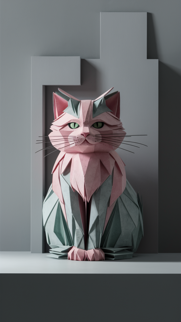 投稿者 tacos14|投稿日:12月 21, 2024猫が姿をハック0パステル猫の切り絵アート:幾何学が描く幻想的な世界ピンク、グレー、グリーンの柔らかなパステルカラーで描かれた猫を特徴とする、魅力的で遊び心あふれる切り絵イラスト。緻密なディテールと幾何学的デザインが融合し、猫の紙細工の姿に神秘的な雰囲気を漂わせています。ミニマルなグレーの背景が作品全体を引き立て、シネマティックで心を奪われるような芸術作品へと昇華しています。※本記事にはアフィリエイト広告を含んでいる場合がございます。